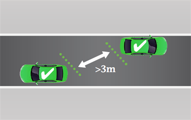 Leave at least 3 metres between your car and the solid white line or dividing strip.