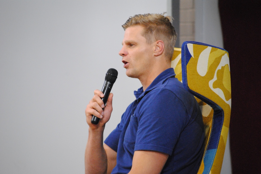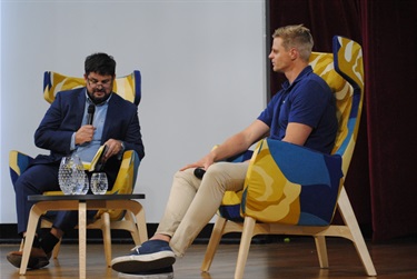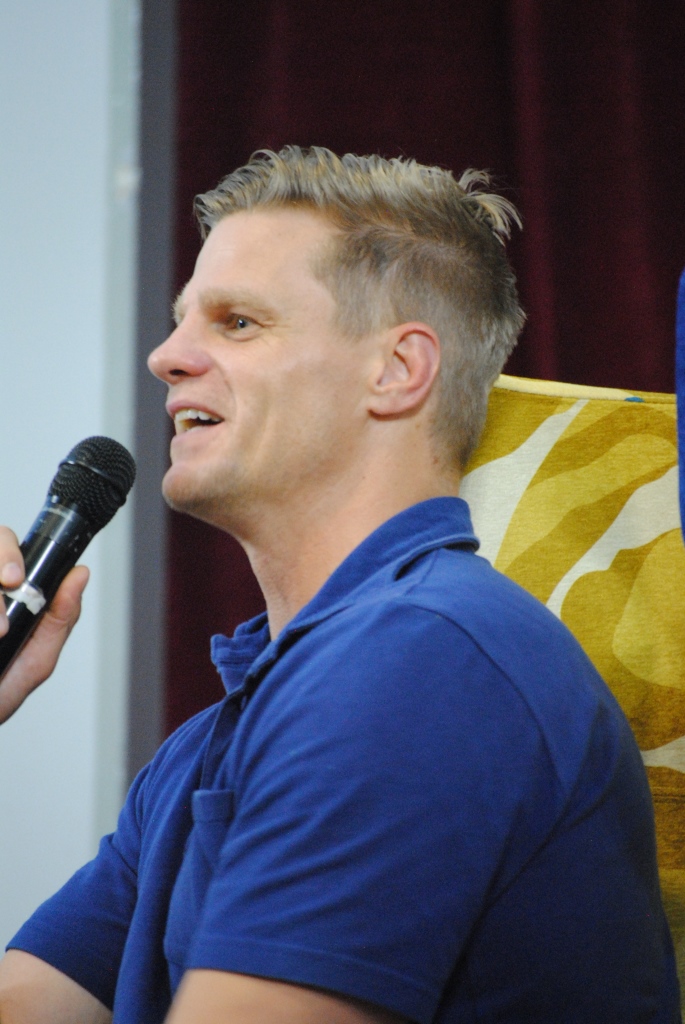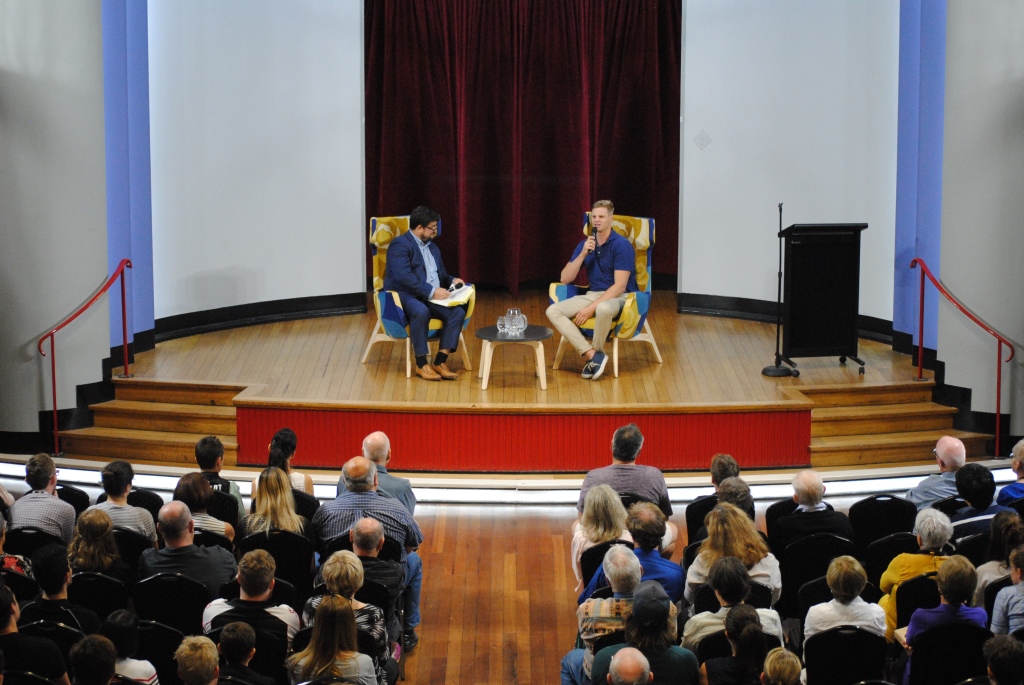 Champion AFL footballer Nick Riewoldt entertained a large crowd in the Burnside Ballroom while promoting his new book The Things That Make Us - Life, Loss and Football.
