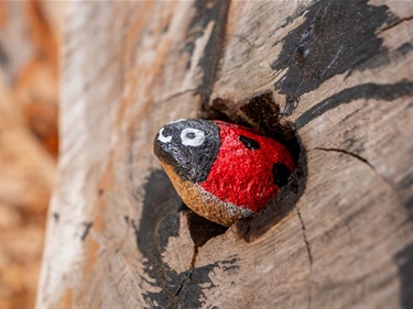 - Natural play area with logs and rocks