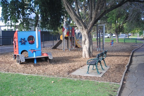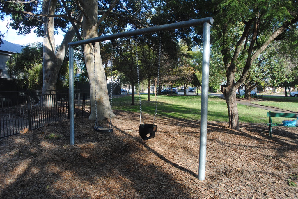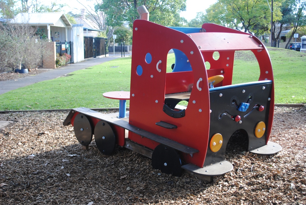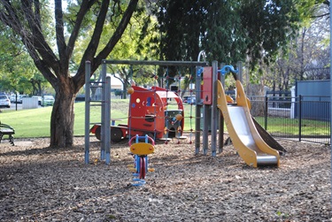 Recently upgraded playground and grassed area adjacent to a scout hall and kindergarten.
